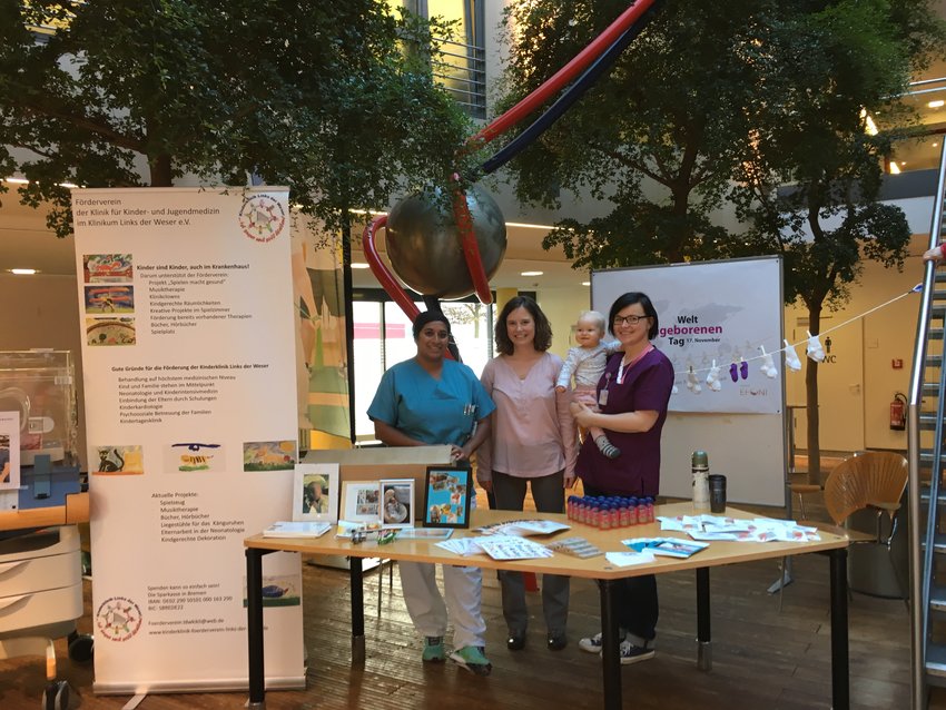 Der Welt-Frühgeborenen-Tag soll die Herausforderungen für Frühchen und ihre Eltern in den Fokus rücken. Den Aktionstag gibt es bereits seit 2008. Er geht auf die Initiative der Organisation "Europeam Foundation for the Care of Newborn Infants" (EFCNI) und weitere weltweite Partner zurück. Die Bremer Ärztin Melanie Hohmann und die Gesundheits- und Krankenpflegerinnen Mandy Ziebart und Catrin Renner hatten für die Besucher entsprechend viel Informationsmaterial parat - und sogar einen echten Inkubator mitgebracht, in dem Frühchen versorgt und überwacht werden, solange sie selbst noch nicht genügend Kraft zum Überleben haben. Der Begriff "Frühgeborene" bezeichnet übrigens alle Kinder, die vor der 37. Schwangerschaftswoche zur Welt kommen. Gezählt werden meist aber vor allem diejenigen, die vor der 32. Schwangerschaftswoche geboren werden, unter 1500 Gramm Geburtsgewicht haben und deshalb intensive medizinische Unterstützung brauchen. Am Klinikum Links der Weser werden etwa 120 sehr kleine Frühchen im Jahr behandelt.