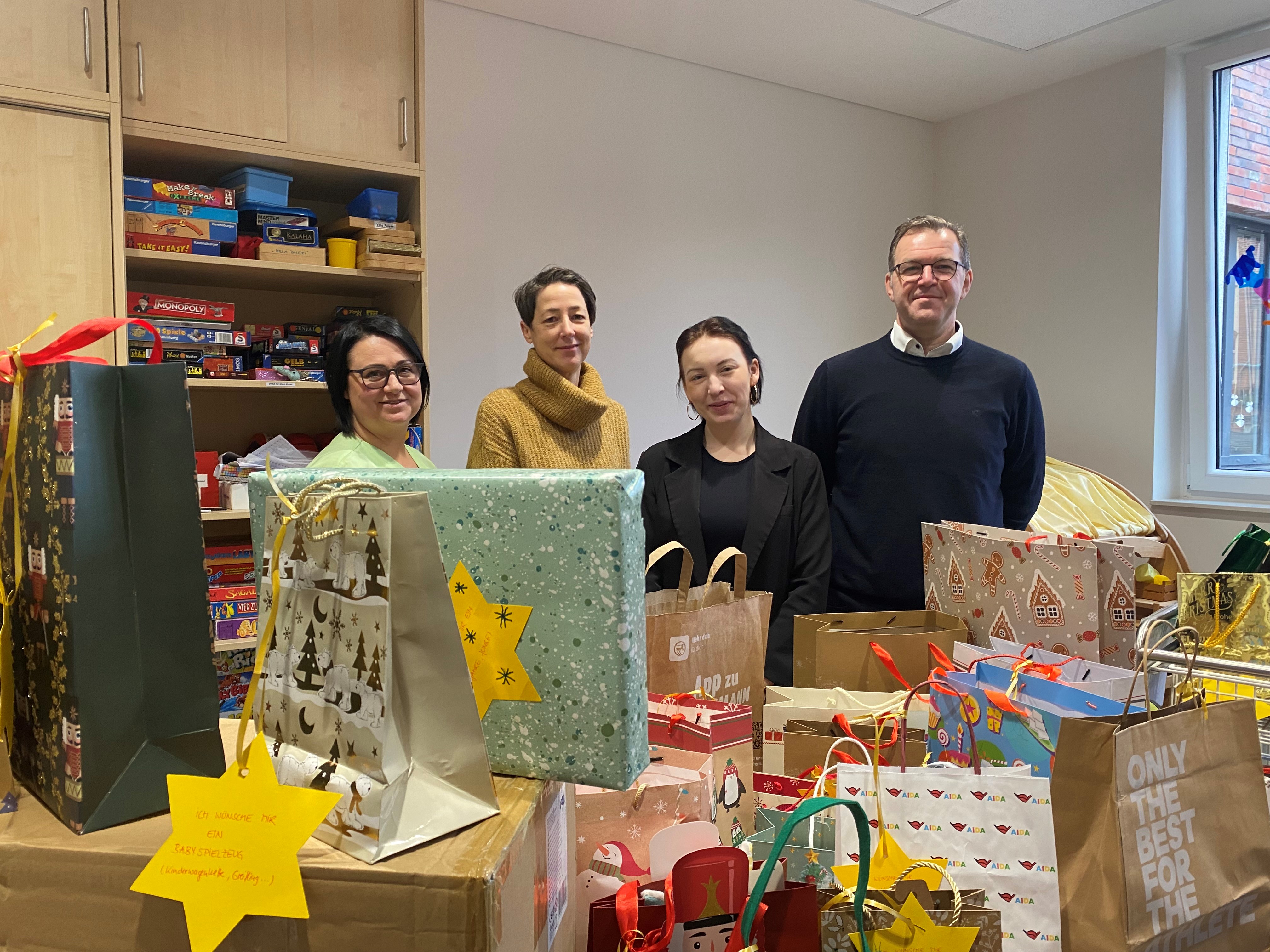 Es ist schon zu einer kleinen Tradition geworden. In den Tagen vor Weihnachten besuchen Carina Saßning (Umweltbetrieb Bremen) und Carsten Thürnau (Bremer Stadtreinigung) die Kinderkliniken der Gesundheit Nord stellvertretend für ihre Unternehmen. Mit im Gepäck ist ein riesiger, bunter Geschenkeberg, der durch die Wunschsternaktion - organisiert vom Klinikum Bremen-Nord zustande gekommen ist. Die liebevoll verpackten Päckchen gehen direkt an Heiligabend an die Kinder, die Weihnachten in den Kinderkliniken im Klinikum Bremen-Nord und Eltern-Kind-Zentrum Prof. Hess. Auch die Patientinnen und Patienten der Kinder- und Jugendpsychiatrie in Bremen-Ost und in Bremen-Nord wurden bedacht und beschenkt.