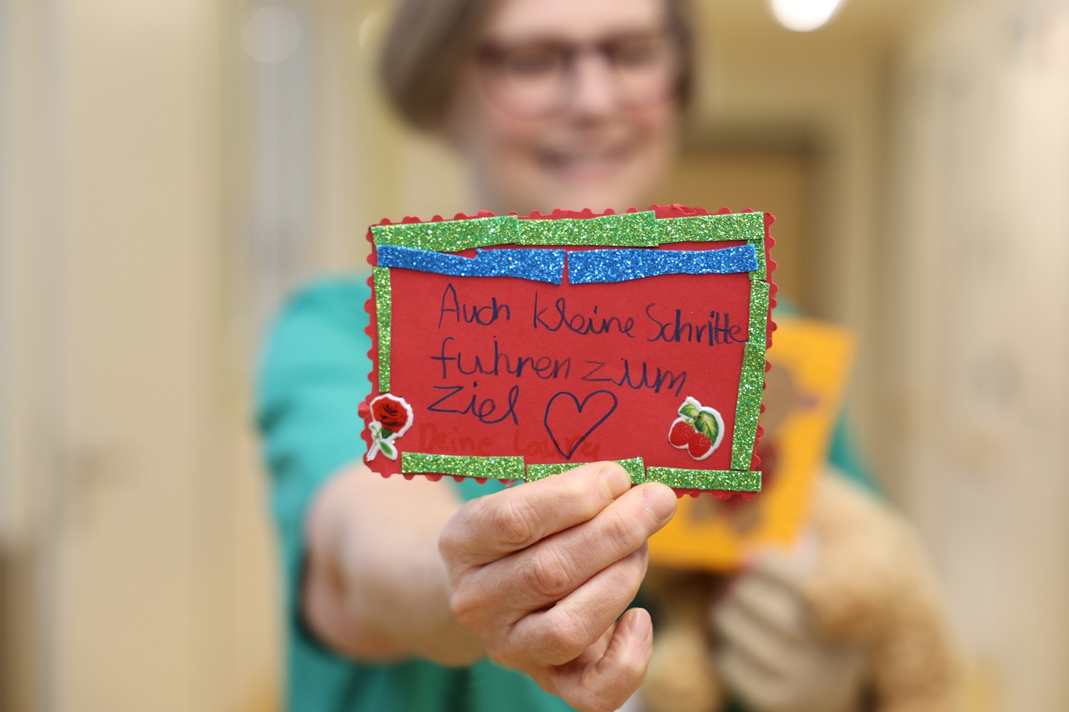 Bei den Botschaften und bei der Gestaltung der Karten hatte sich die Lehrerin bewusst im Hintergrund gehalten. „Das kam alles aus ihnen selbst. Hinter jeder Karte stecken allein die Ideen der Kinder“, sagt Sarah Bartels. Und genau das dürfte bei den jungen Patientinnen und Patienten im Krankenhaus besonders große Freude auslösen – und einen Beitrag dazu leisten, dass es ihnen bald ein wenig besser geht.