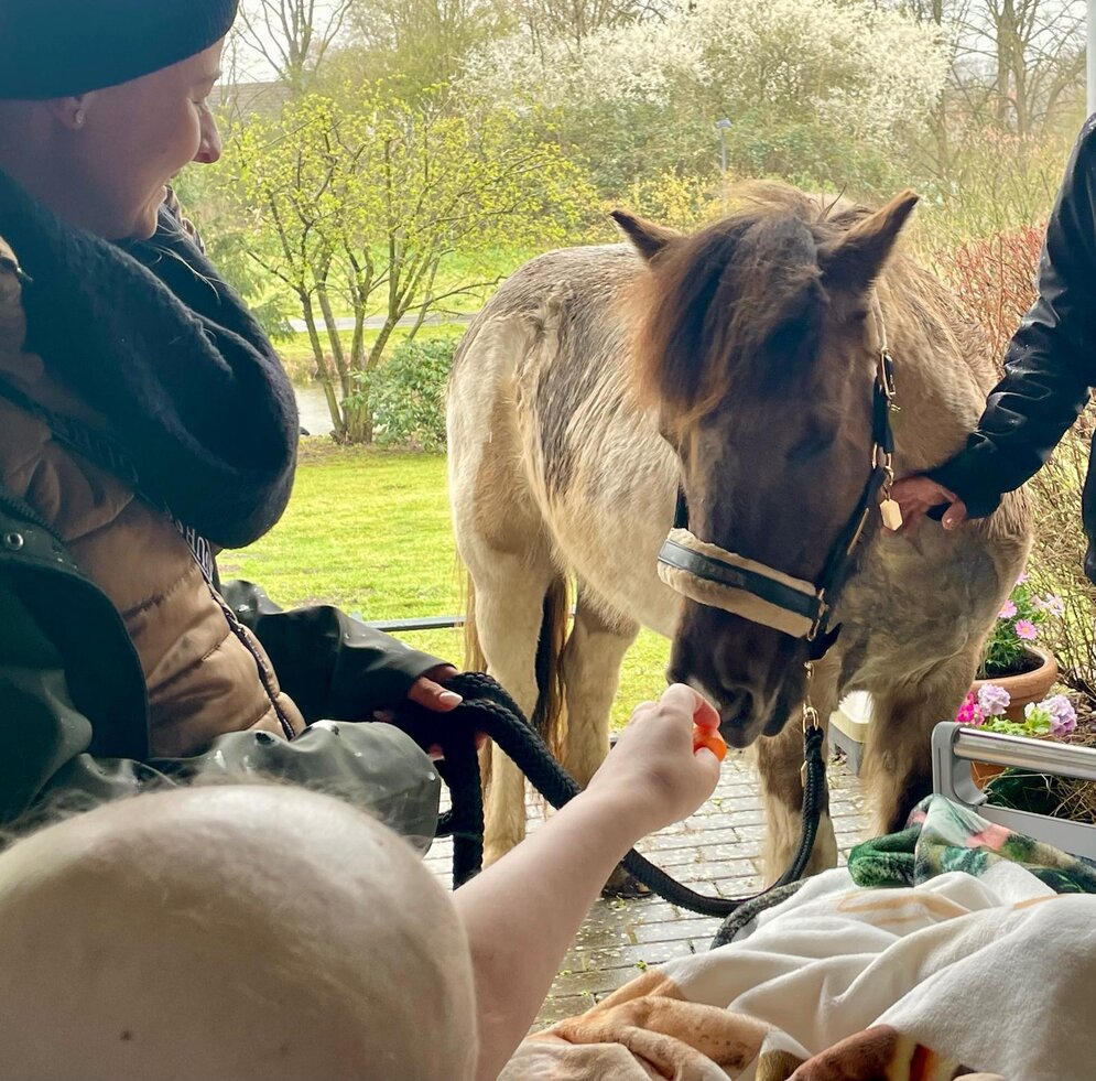 "Das war auch für uns als Team sehr berührend, dieses besondere Treffen mitzuerleben", sagt Klinikpflegeleitung Tanja Warrelmann. "Wir versuchen, die Wünsche unserer Patientinnen und Patienten so gut es geht möglich zu machen. Und wir freuen uns sehr, dass es uns sogar bei diesem Anliegen gelungen ist." Natürlich wurde das Tier nicht durch das Krankenhaus geführt, sondern konnte über die äußere Zufahrt an die Terrasse des Patientinnenzimmers geführt werden. "