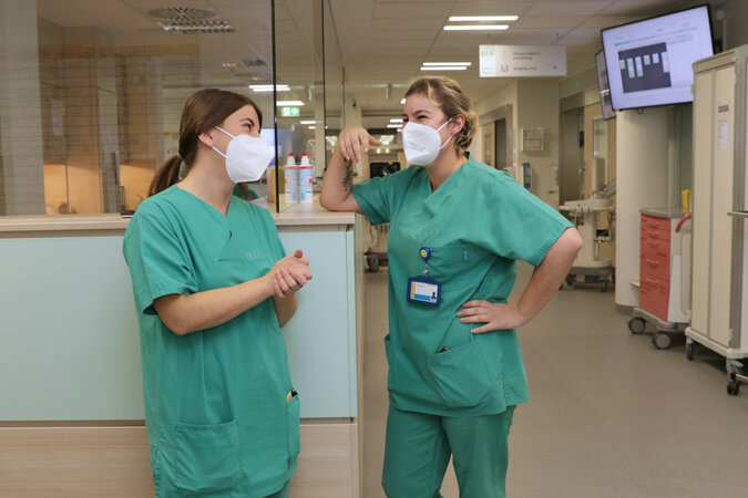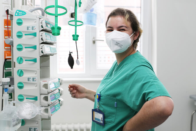 Der Entschluss auf der Intensivstation ins Berufsleben zu starten, kam bei Olivia Nixdorf während der Ausbildung. „Eigentlich wollte ich Notfallsanitäterin werden, während der Pflegeausbildung habe ich gemerkt, dass die Intensivstation am besten zu mir passt“, sagt sie. Notfallsituationen, bei denen es auf schnelles Handeln ankommt seien auch hier an der Tagesordnung. „Gerade die Anfangszeit ist sehr herausfordernd, aber man hat nie das Gefühl, irgendeine Frage nicht stellen zu dürfen.“