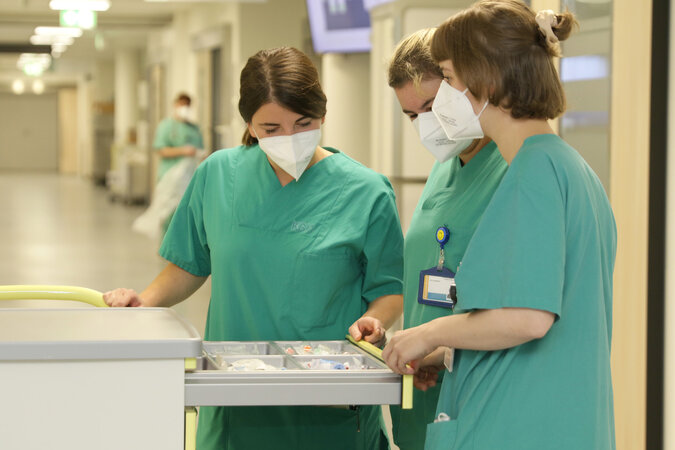 Zwar spiele auch das Thema Tod im Vergleich zu Normalstationen bei ihnen auf der Intensivstation eine größere Rolle. Im Vordergrund stehen für die drei jungen Frauen aber vor allem die Möglichkeiten, wie man den Patientinnen und Patienten in der Intensivpflege weiterhelfen kann. Oft sind es die vielen kleinen Fortschritte des Patienten auf dem Weg zurück in ein gesundes Leben, die den Beruf besonders machen. Fiona Eileen Loll hatte letztens erst wieder so ein Erlebnis: Eine Patientin wurde extubiert und konnte nach Wochen wieder selbständig atmen. „Da habe ich zum ersten Mal ihre Stimme gehört – und sie nach langer Zeit ihre eigene auch. Das war ein rührender Moment. Und solch ein Erlebnis macht den ganzen Tag gleich zu etwas Besonderem“, erzählt Fiona Eileen Loll. Und von diesen besonderen Momenten wollen die Berufseinsteiger in den kommenden Jahren noch viele mehr erleben.