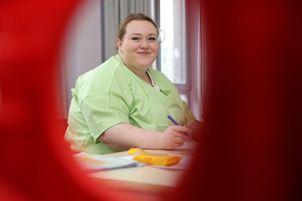 „Wir sind fast schon verwundert, wie viel Spaß es macht“, sagt Betül Kürkcü. Denn bevor es losging sei in ihrem Kurs auch die Sorge da gewesen, wie gut sie sich im echten Stationsalltag zurechtfinden würden. 18 Schülerinnen und Schüler umfasst der Kurs 2022a. Die angehenden Pflegekräfte sind im zweiten von drei Lehrjahren. Und sieben von ihnen haben die Vertiefung Kinderkrankenpflege gewählt. Für sie war also von vornherein klar, dass sie später auch einmal in der Kinderklinik arbeiten möchten. So wie Betül Kürkcü.