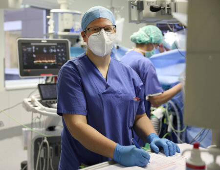 Soeben kommt Dr. Anne Schneider aus dem OP. Es war ein besonderer Tag für sie. „Ein richtig guter sogar“, sagt die 34-jährige Anästhesistin. Denn zum ersten Mal hat sie an diesem Morgen eine Herz-Patientin alleine betreut. Sie hat sie in die Narkose versetzt, während der OP am Ultraschall gearbeitet und die Patientin überwacht – praktisch allein, ohne dass viel Anleitung von den Kollegen nötig war. Dr. Anne Schneider ist zwar seit einigen Jahren schon Fachärztin, seit Anfang dieses Jahres aber auch wieder in der Ausbildung. Und zwar als eine von zwei Teilnehmerinnen im ganz neu geschaffenen Weiterbildungsprogramm Kardio-Anästhesie im Klinikum Links der Weser.