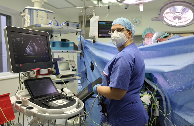 „Herzpatienten brauchen eine hochspezialisierte Betreuung. Und deshalb ist auch eine sehr spezialisierte Ausbildung der Herz-Anästhesisten nötig“, sagt Leitender Oberarzt Dr. David Heppel, der das Ausbildungsprogramm zusammen mit Chefarzt Dr. Jonas Boelsen zum Beginn dieses Jahres auf die Beine gestellt hat. Allein das Setting ist im Kardio-OP schon anders als in anderen OP-Sälen. Ein Wechsel von den anderen Chirurgie-Disziplinen in den Herz-OP nicht einfach so möglich. Anästhesistinnen und Anästhesisten müssten zum Beispiel den Herz-Ultraschall beherrschen, die Herz-Lungen-Maschine kennen und mit vielen anderen spezialisierten Bereichen wie der Kardiotechnik, der interventionellen Kardiologie, den Anästhesie- und Intensivpflegeteams und den Herzchirurgen zusammenarbeiten können.