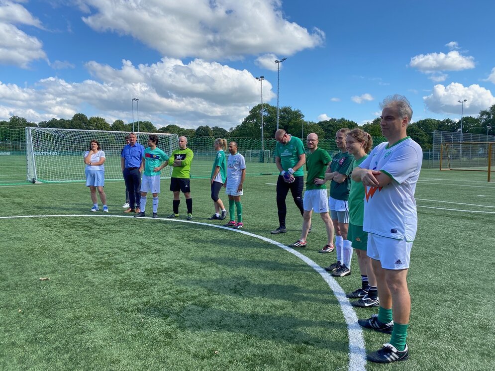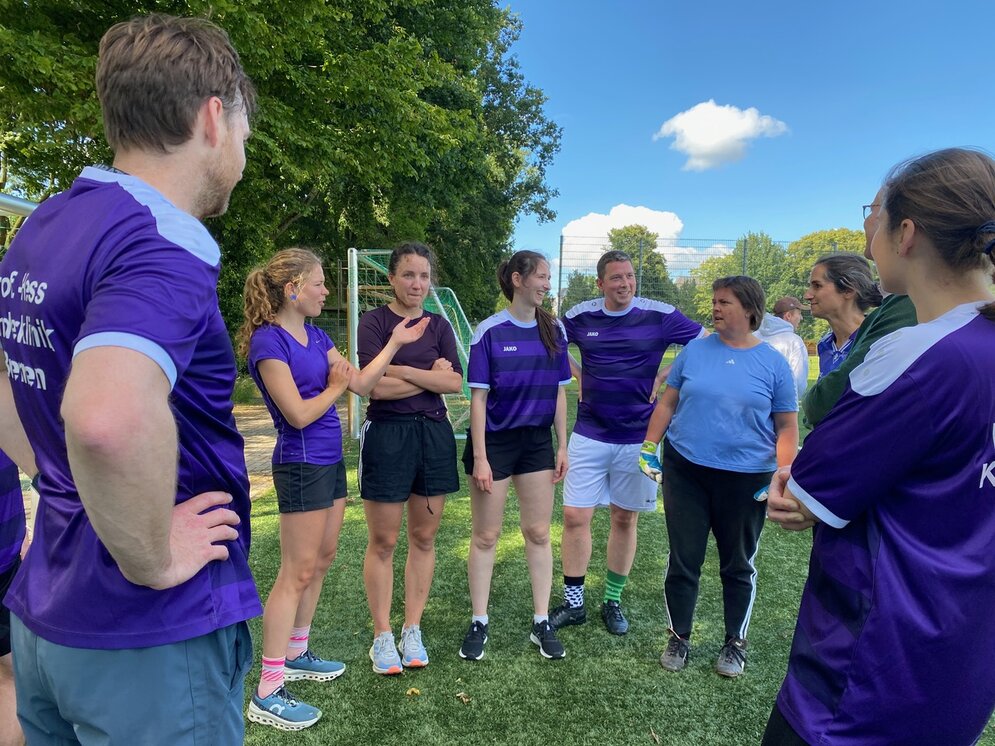 "Bereits letztes Jahr hat es allen sehr viel Spaß gemacht und es war klar, dass wir das dieses Jahr unbedingt wiederholen möchten", sagt Prof. Melchior Lauten, Chefarzt des Eltern-Kind-Zentrums Prof. Hess. Und so schlüpfte das Elki-Team wieder in seine lilafarbenen Trikots. Das Team der Kinderarztpraxen war in Grün-Weiß gekleidet. Aber natürlich wurde an diesem Tag nicht nur Fußball gespielt. Zuvor hatten sich Ärztinnen und Ärzte gemeinsam fortgebildet - unter anderem einem Vortrag von Prof. Arnulf Pekrun im Elki gelauscht.