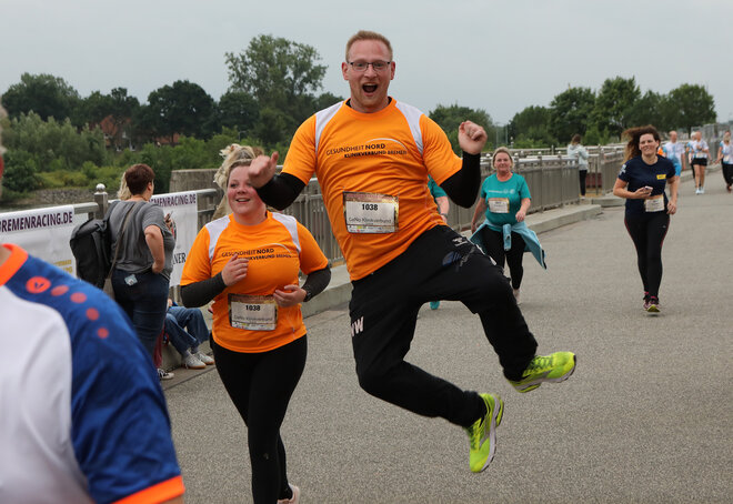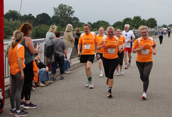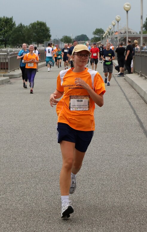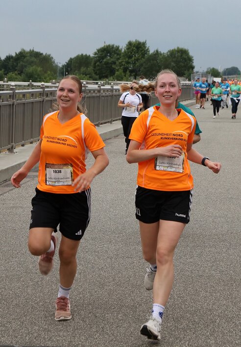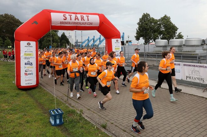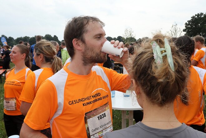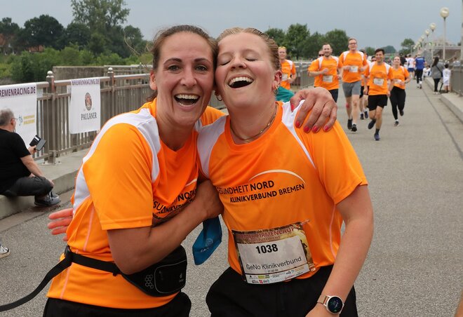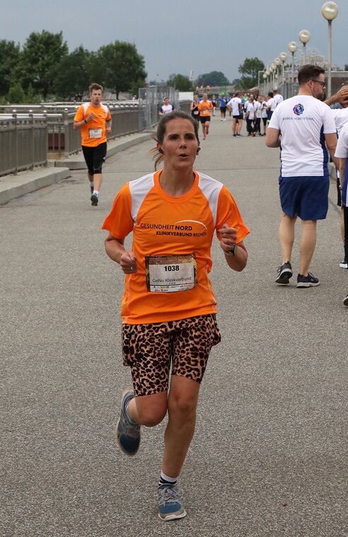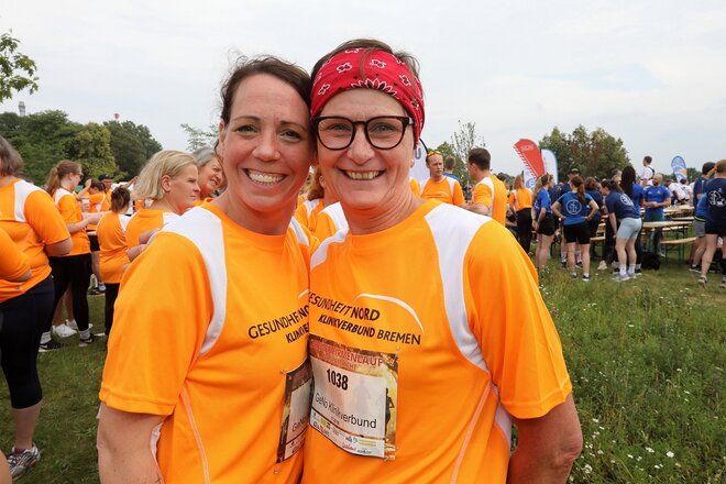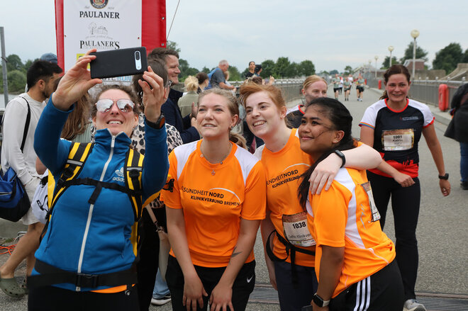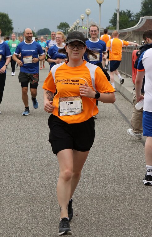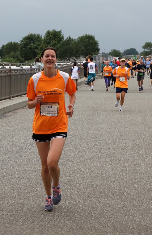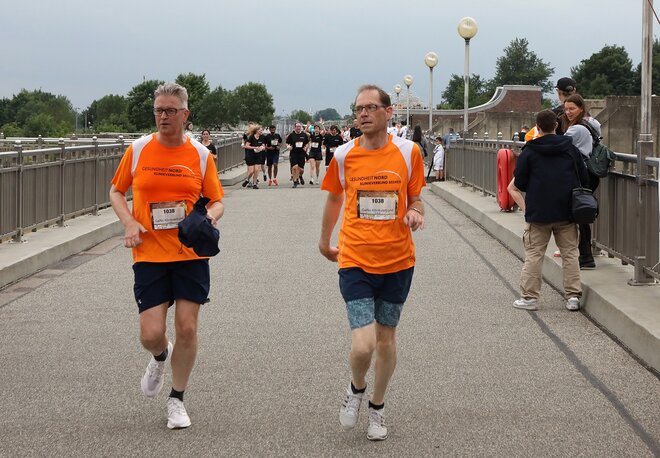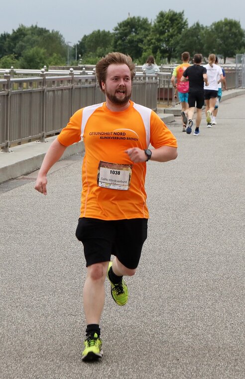 Auch das nicht gerade sommerlichste Wetter und ein drohendes Gewitter konnte die Kolleginnen und Kollegen des Klinikverbunds nicht abschrecken. Mit 130 Teilnehmerinnen und Teilnehmer stellte die Gesundheit Nord am Donnerstagnachmittag das größte Team des Bremer Firmenlaufs zur Spätschicht und setzt bei grauem Himmel mit seinen orangefarbenen Leibchen einen knalligen Farbakzent im Teilnehmerfeld.