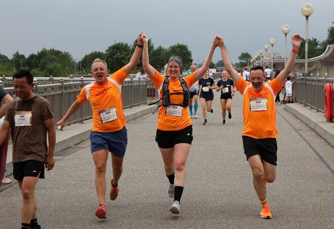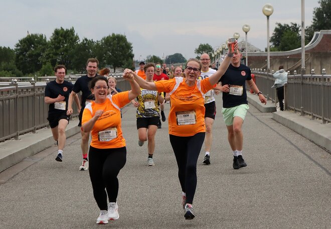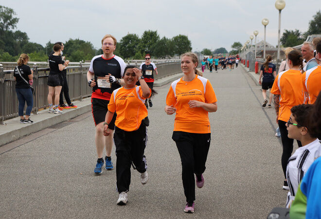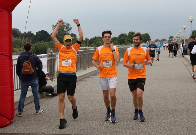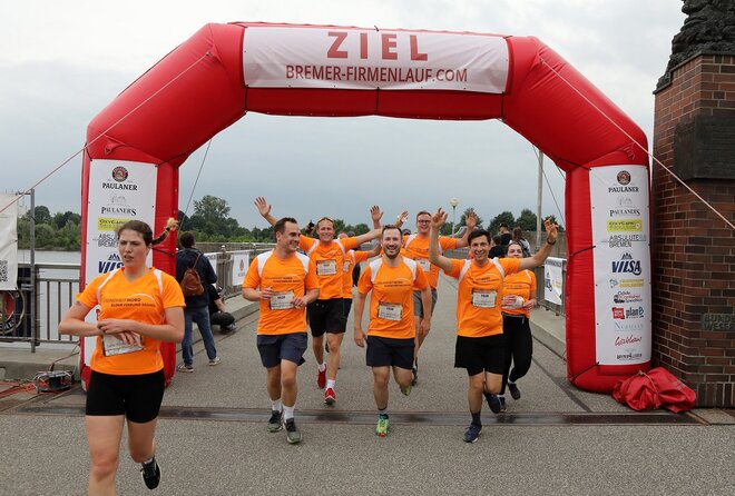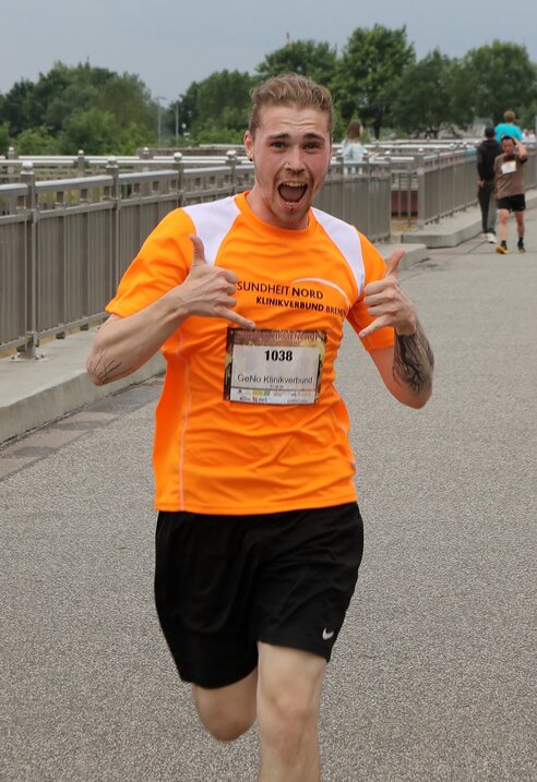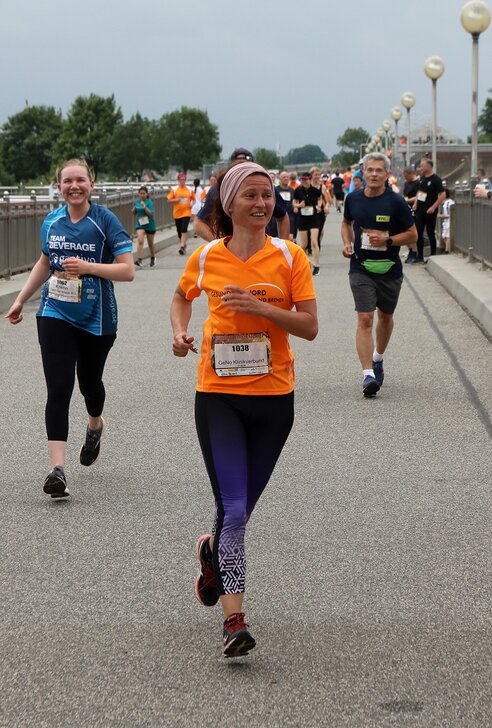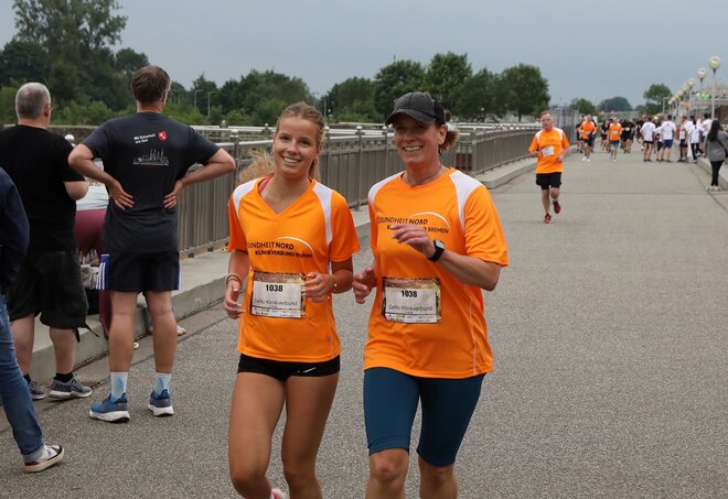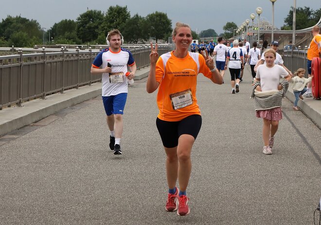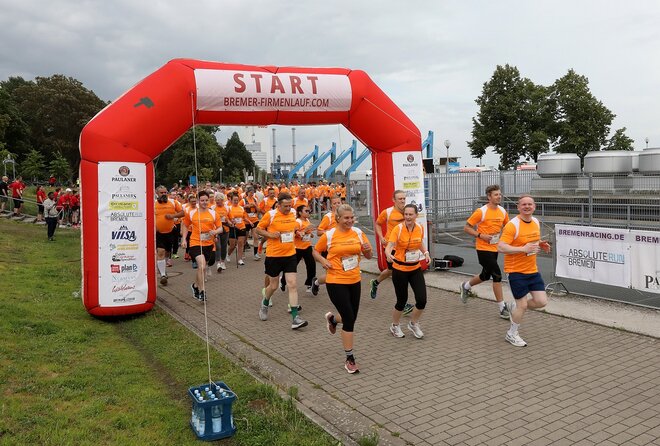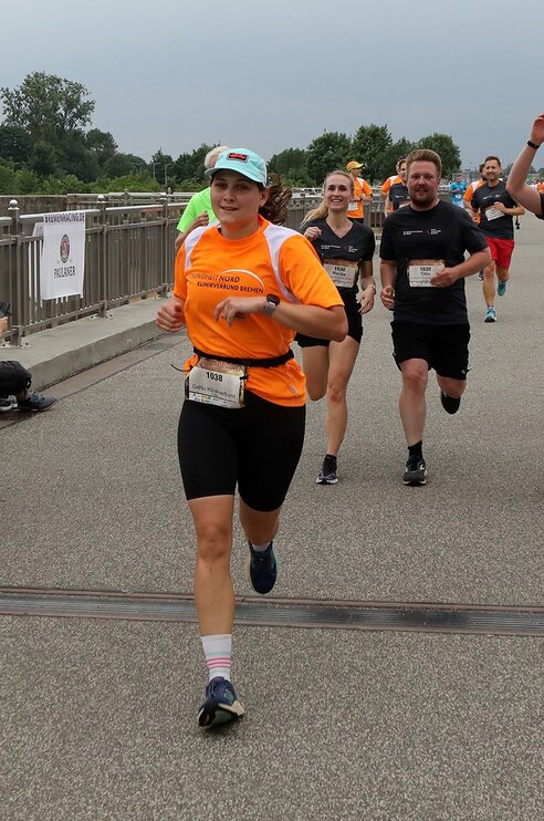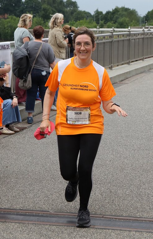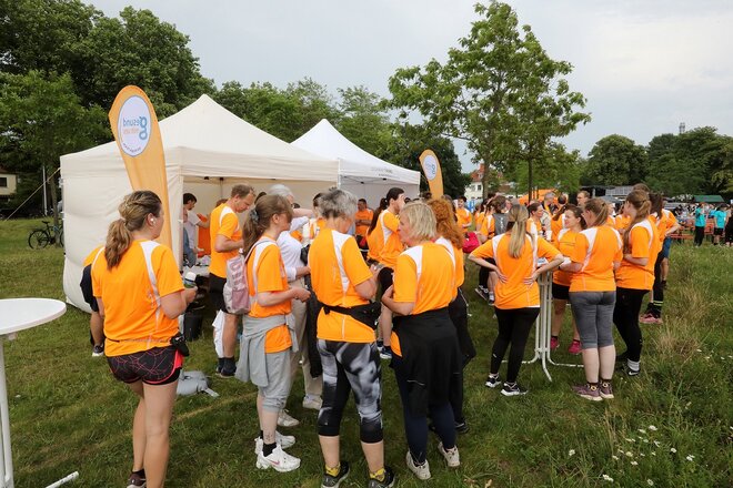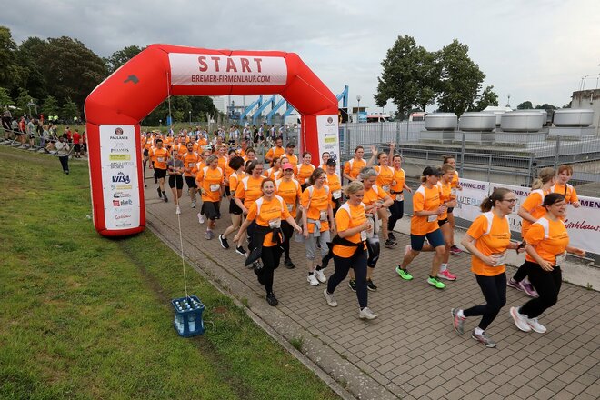 Auch das nicht gerade sommerlichste Wetter und ein drohendes Gewitter konnte die Kolleginnen und Kollegen des Klinikverbunds nicht abschrecken. Mit 130 Teilnehmerinnen und Teilnehmer stellte die Gesundheit Nord am Donnerstagnachmittag das größte Team des Bremer Firmenlaufs zur Spätschicht und setzt bei grauem Himmel mit seinen orangefarbenen Leibchen einen knalligen Farbakzent im Teilnehmerfeld.