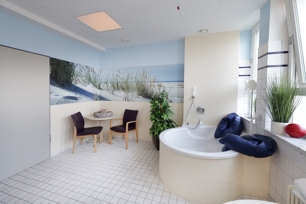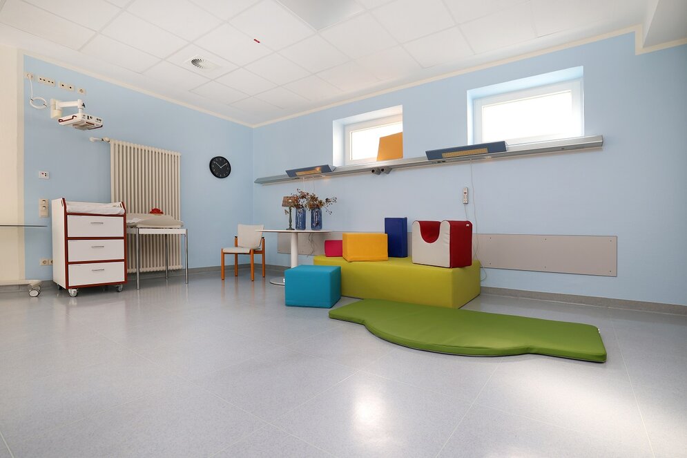 „Wir haben denke ich einen wirklich schönen Bereich geschaffen, in dem wir eine sichere Geburt in einem ruhigen Umfeld ermöglichen können“, sagt PD Dr. Marc-Philipp Radosa, Chefarzt der Klinik für Gynäkologie und Geburtshilfe im Klinikum Bremen-Nord. „Es ist deutlich mehr als nur ein Übergangskreißsaal, sondern ein Ort mit Wohlfühlpotenzial.“ Neu ist zudem ein sogenannter Be-up-Kreißsaal – also ein Gebärraum, der der werdenden Mutter mittels bunter Polster und Hilfsmitteln weitere Alternativen zur eher klassischen Geburt im Liegen ermöglicht. „Damit fördern wir zusätzlich aktivere Positionen, die vielen Frauen während der Geburt gut tun und die natürliche Geburt unterstützen“, sagt Imke Helmke.