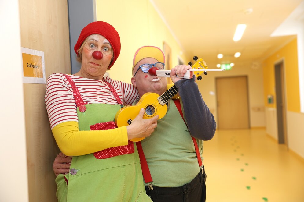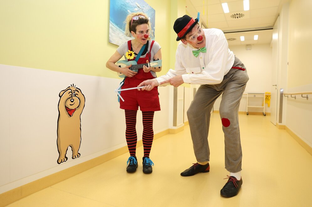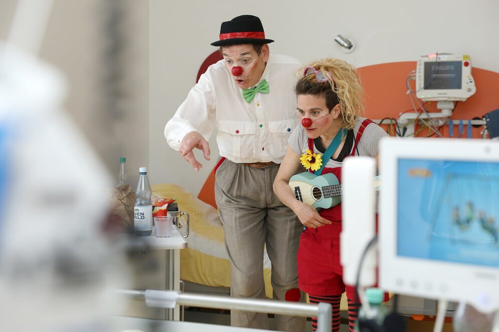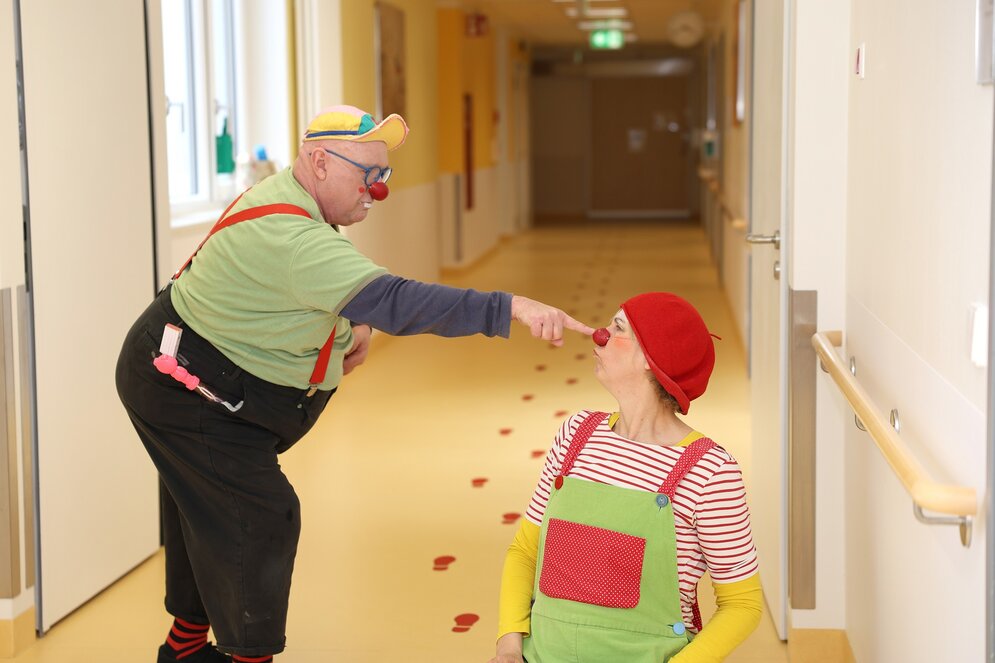 Das Team besteht aus insgesamt zehn Clowns und ist über Bremen hinaus von Montag bis Donnerstag an verschiedenen Spielorten unterwegs – vom Hospiz über die Kinderklinik bis hin zum Altenpflegeheim. Die Clown treten meist zu zwei auf, fragen vorher, ob sie überhaupt ins Zimmer kommen dürfen und sorgen spontan – pantomimisch, musikalisch und auch mal akrobatisch – für heitere Momente. Neben diesen Momenten steht die Patientensicherheit bei den Angeboten ganz oben. So sind alle Klinikclowns in Sachen Krankenhaushygiene geschult, kennen also die Regeln.