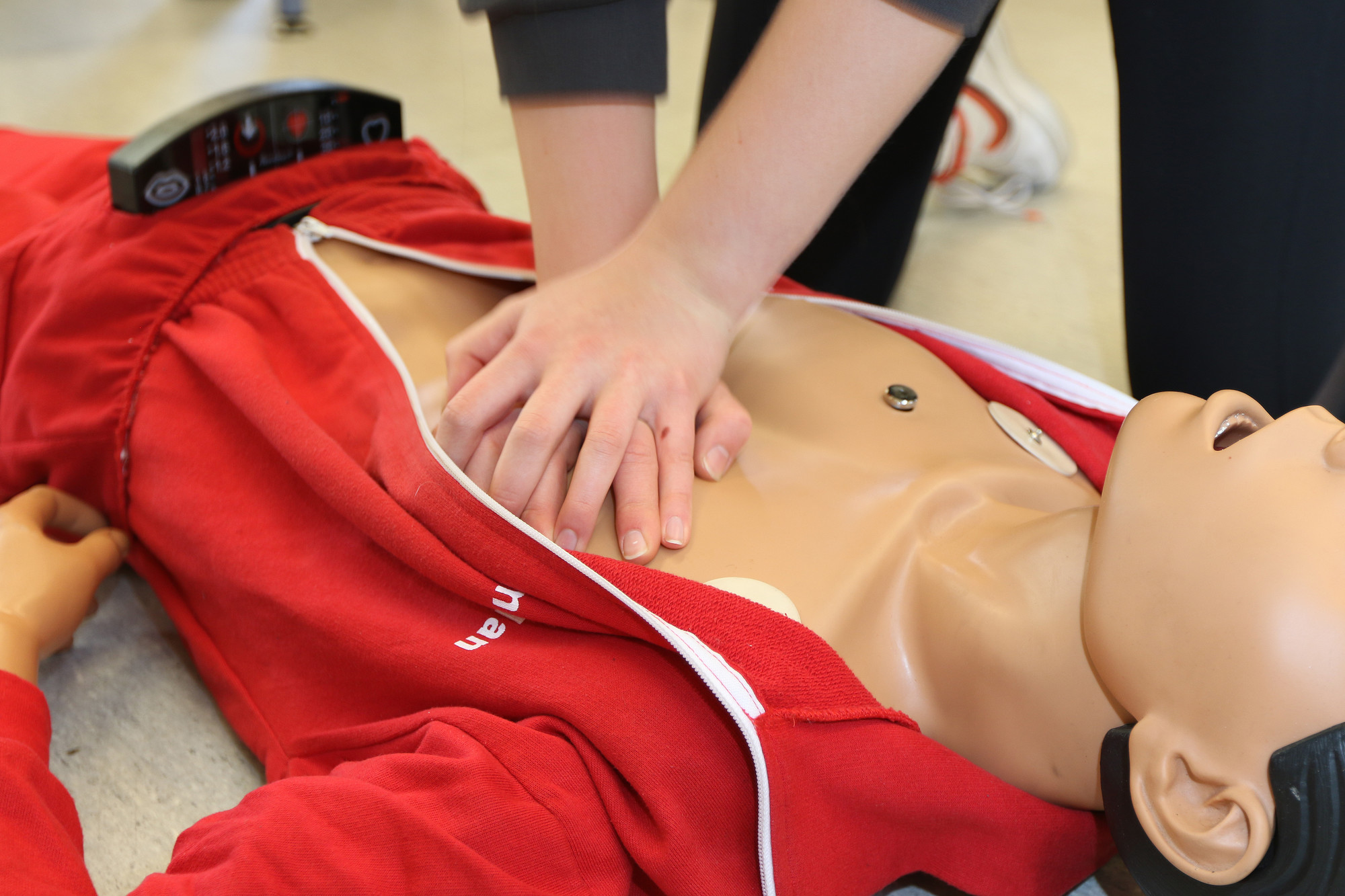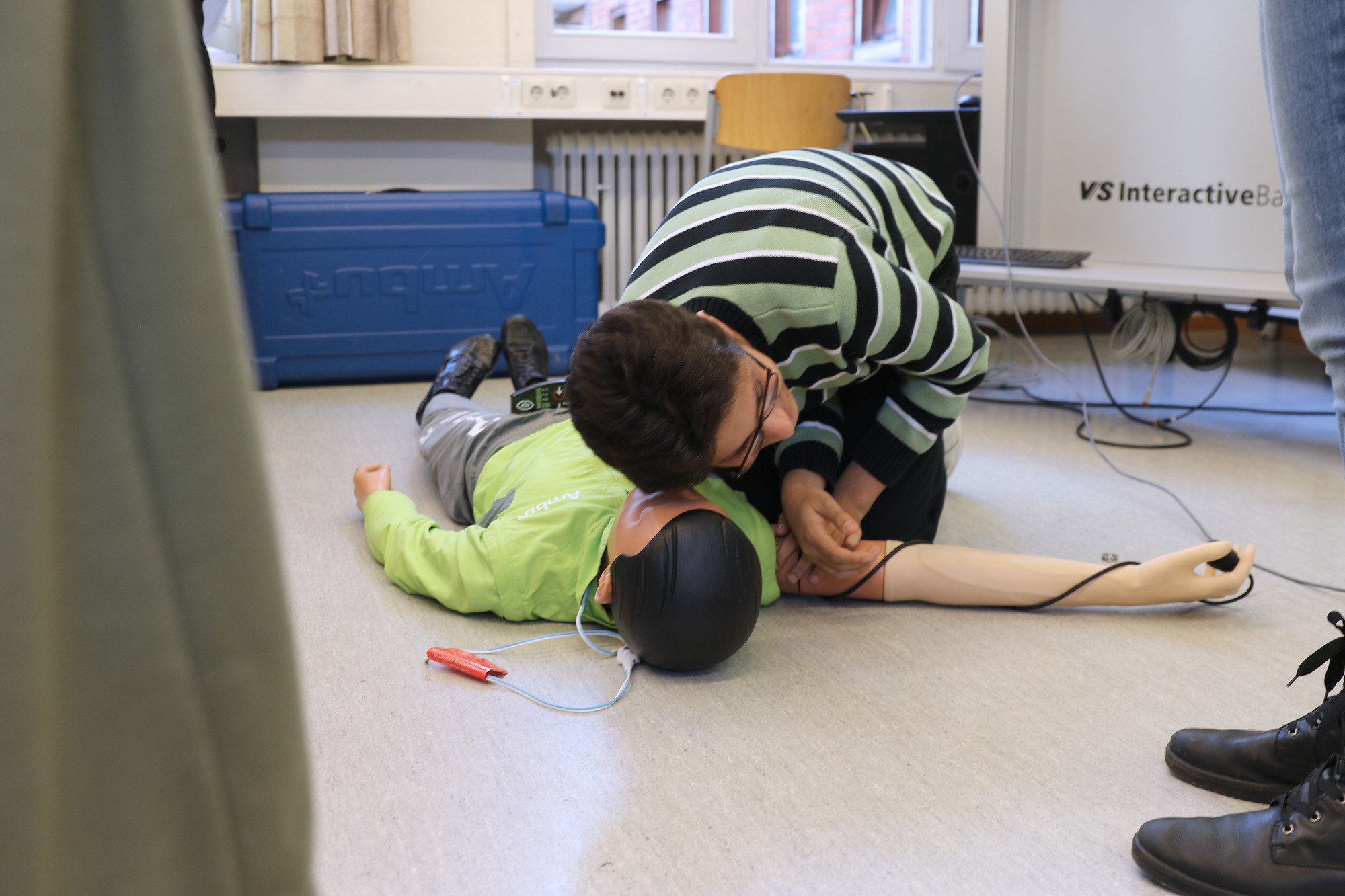 Diejenige, die am Boden liegt und Hilfe braucht, ist bloß eine Puppe. Aber sie steckt heutzutage so voller Technik, dass man genau messen kann, wie gut und effektiv die Rettungsmaßnahmen gewesen sind. „Im Notfall sind viele Leute oft zögerlich oder haben Angst etwas falsch zu machen. Ge-nau das wollen wir mit unserem Einsatz ändern“, sagt Oberarzt Tendahl. Er und das Team der Klinik für Anästhesiologie, Intensiv- und Notfallmedizin vom Klinikum Bremen-Nord möchte gerade junge Menschen darauf trainieren, im Ernstfall richtig handeln zu können. „In Deutschland greifen Laien im Notfall noch zu selten ein, da ist man in anderen Regionen wie Skandinavien schon viel weiter“, sagt Tendahl.