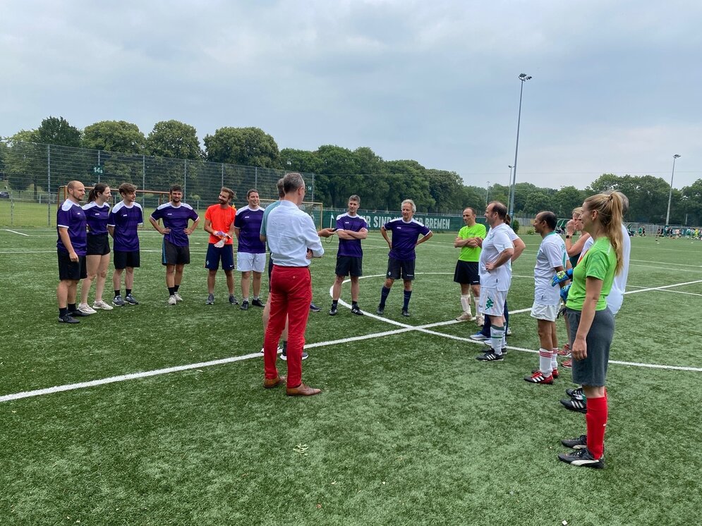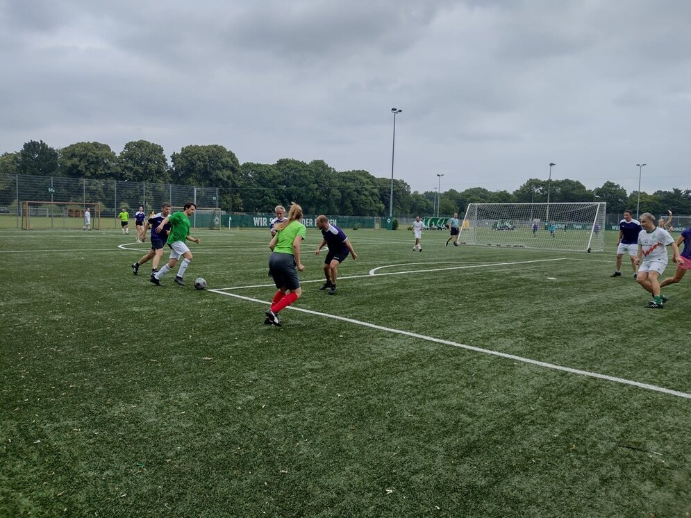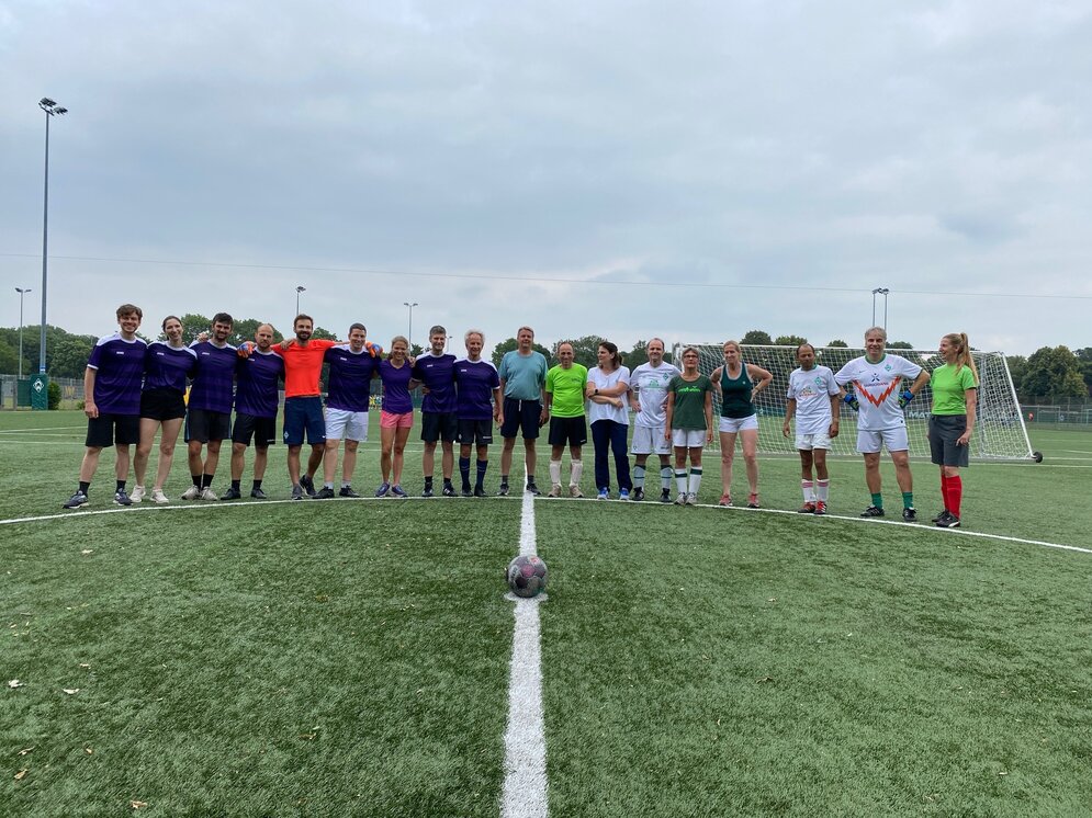 Bei einem gemeinsamen Fußballspiel - gewissermaßen dem 1. Elki-Cup - setzte sich das Team des Eltern-Kind-Zentrums am Ende mit 5:4 gegen das Team der Kinderarztpraxen durch. Ein richtig schöner Nachmittag, der bei einem gemeinsamen Grillabend ausklang.